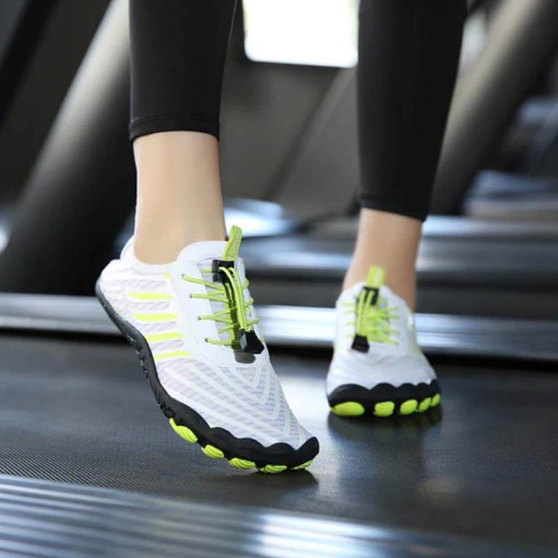 ✓ Breite Zehenbox – Eine großzügige Zehenbox und flexible Konstruktion ermöglichen Ihren Zehen natürliche Bewegungsfreiheit und Spreizung, was Kraft und Flexibilität im Fuß merklich steigert.