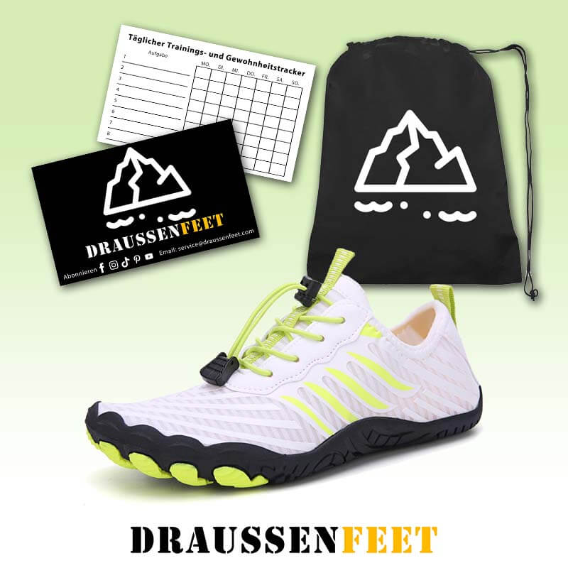 Mit Draussenfeet Barfußschuhen genießen Sie höchsten Tragekomfort, fördern gesunde Füße und erleben ein authentisches Gehgefühl. Diese innovativen Schuhe vermitteln das Gefühl, barfuß zu laufen, und bieten gleichzeitig wichtigen Schutz und Halt.