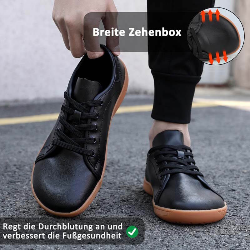 ✓ Breiter Zehenbereich – Der breite Zehenbereich in Kombination mit der Flexibilität von Barfußschuhen ermöglicht es den Zehen, sich frei zu bewegen und auszubreiten, was die Fußstärke und -flexibilität fördert.