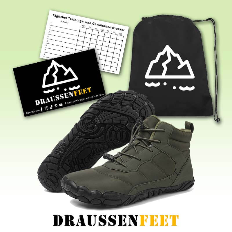 Bei Draussenfeet® setzen wir uns gegen den Trend von konventionellen und schmerzhaften Schuhen ein. Unsere Barfußschuhe sind so konzipiert, dass sie deinen Füßen Raum zum Atmen und Bewegen geben, genau wie die Natur es vorgesehen hat.