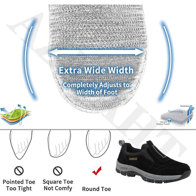 - 2. Breites Fußdesign für Sicherheit und Komfort: Unsere Wanderschuhe sind mit einer breiten Fußform ausgestattet und bieten eine bequeme Passform für Menschen mit breiteren Füßen. Verabschieden Sie sich von verkrampften Zehen und begrüßen Sie den ganztägigen Komfort!