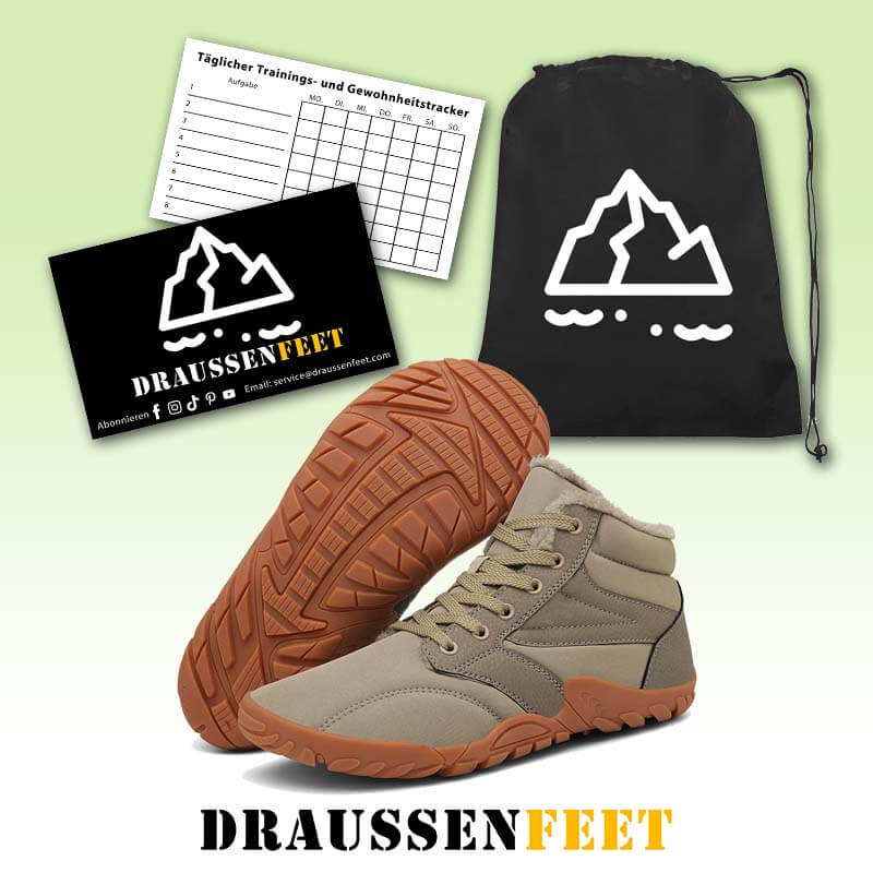 Bei Draussenfeet® setzen wir uns gegen den Trend von konventionellen und schmerzhaften Schuhen ein. Unsere Barfußschuhe sind so konzipiert, dass sie deinen Füßen Raum zum Atmen und Bewegen geben, genau wie die Natur es vorgesehen hat.
