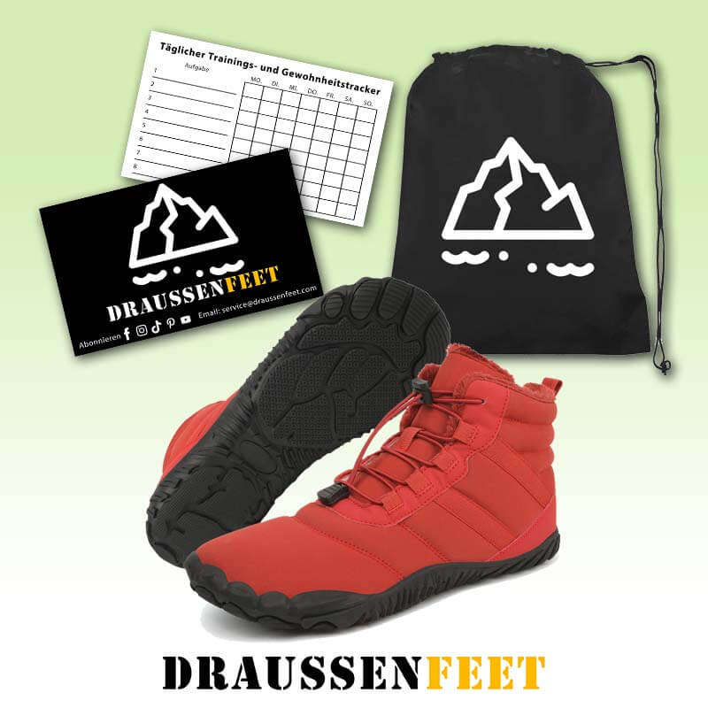 Bei Draussenfeet® setzen wir uns gegen den Trend von konventionellen und schmerzhaften Schuhen ein. Unsere Barfußschuhe sind so konzipiert, dass sie deinen Füßen Raum zum Atmen und Bewegen geben, genau wie die Natur es vorgesehen hat.