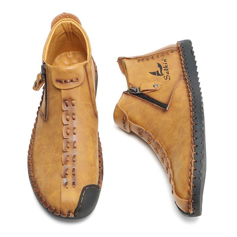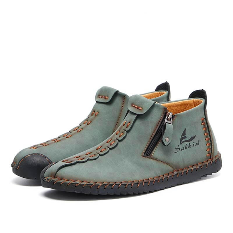 Farbe: Schwarz, Grün, Blau, Gelb Obermaterial: PU Außensohlenmaterial: Gummi Typ: Handgenähte Stiefel Funktion: Weich Anlass: Lässig, Täglich Verschlussart: Seitlicher Reißverschluss Saison: Die ganze Saison Rohrhöhe: Knöchel Zehenart: Rund