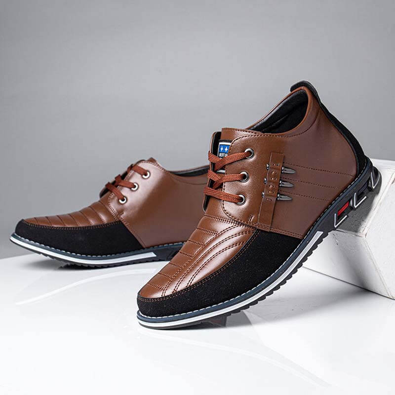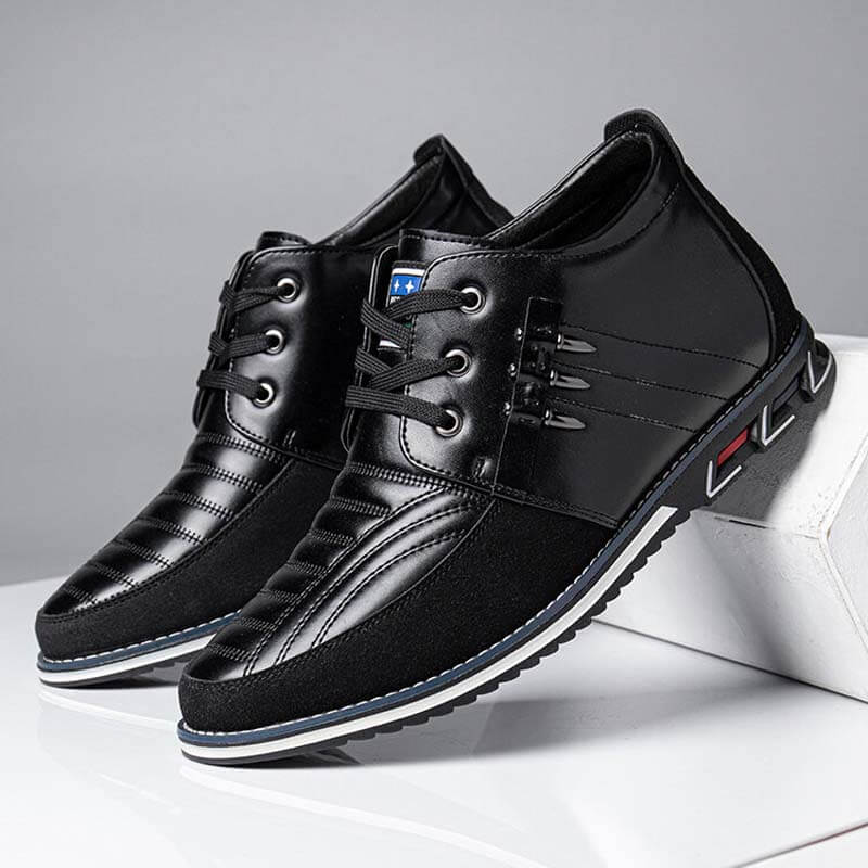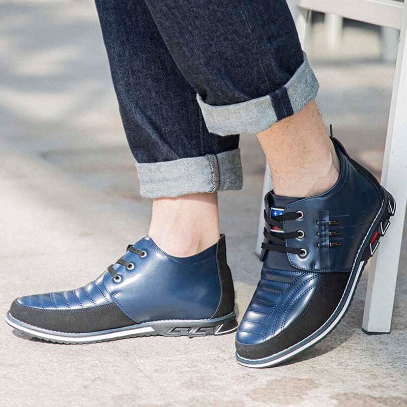 Farbe: Schwarz, Braun, Blau Verschlusstyp: Schnürung Muster: Argyle Typ: Lässige Business-Stiefel Obermaterial: Mikrofaserleder Außensohlenmaterial: Gummi Designelement: Niet Struktur: Schnürung Funktion: Rutschfest, weich Geschlecht: Männer Zehenart: Rund Absatzhöhe: 1-3cm in flach Fersentyp: Flach Rohrhöhe: Knöchel Stil: Lässig Saison: Die ganze Saison