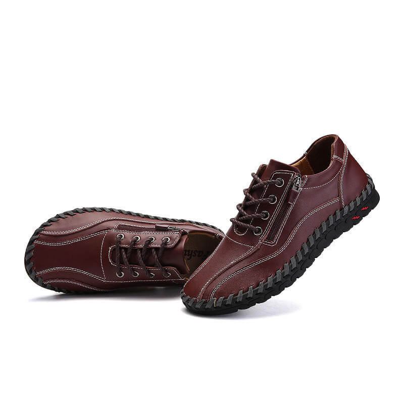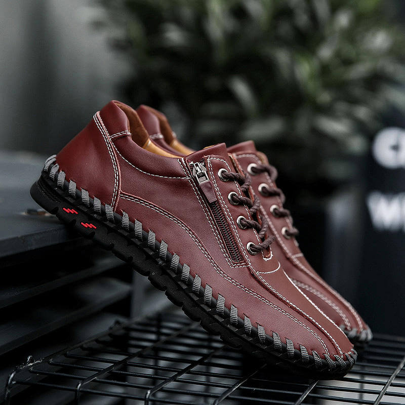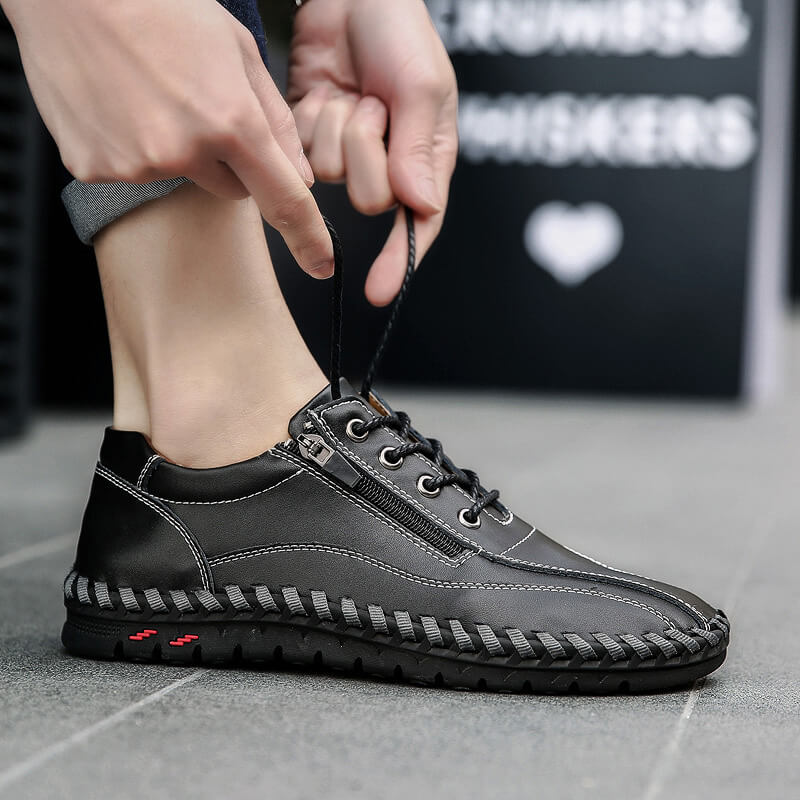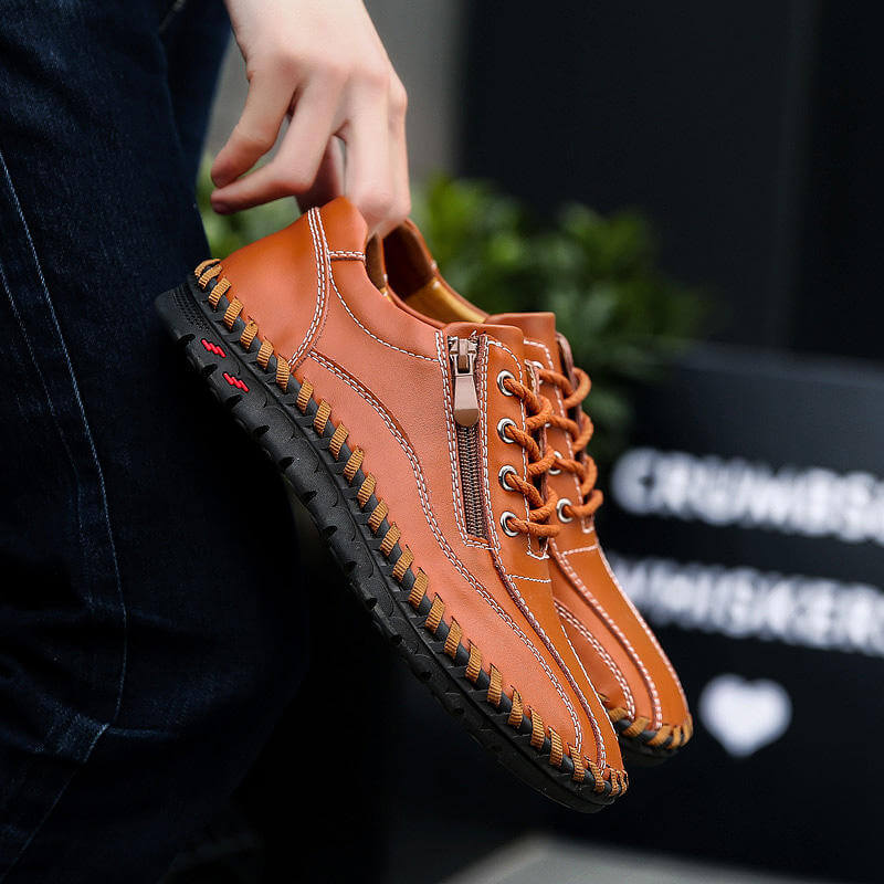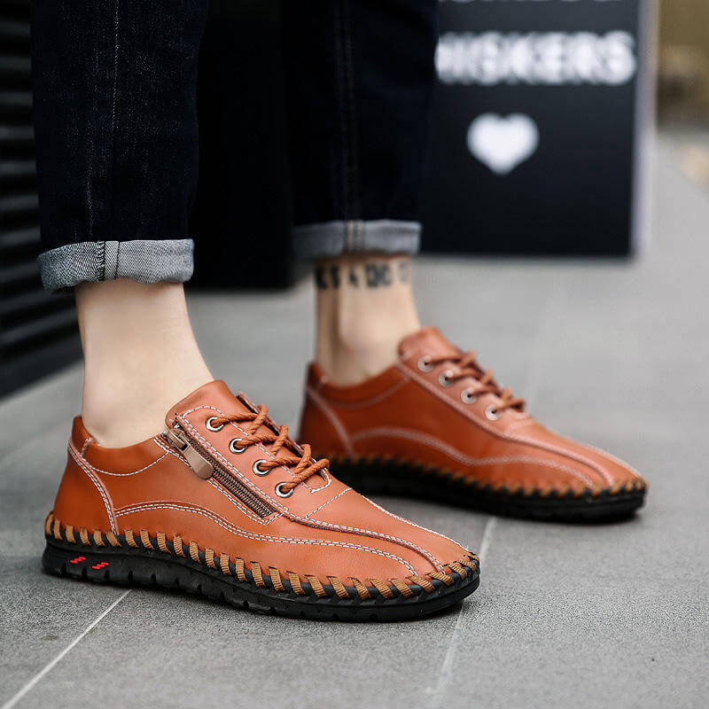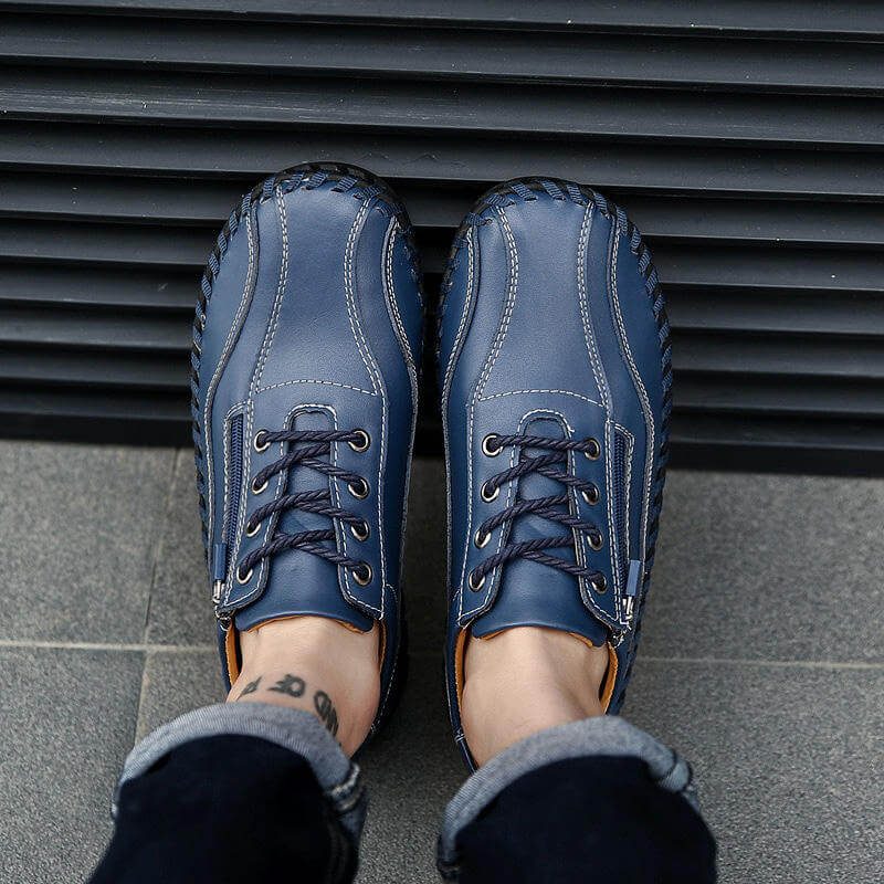 Farbe: Schwarz, Gelbbraun, Blau, Rotbraun Obermaterial: Leder Außensohlenmaterial: Gummi Typ: Handnähen von Schuhen Funktion: Weich Anlass: Täglich Verschlusstyp: Schnürung, Reißverschluss Saison: Die ganze Saison Zehenart: Rund