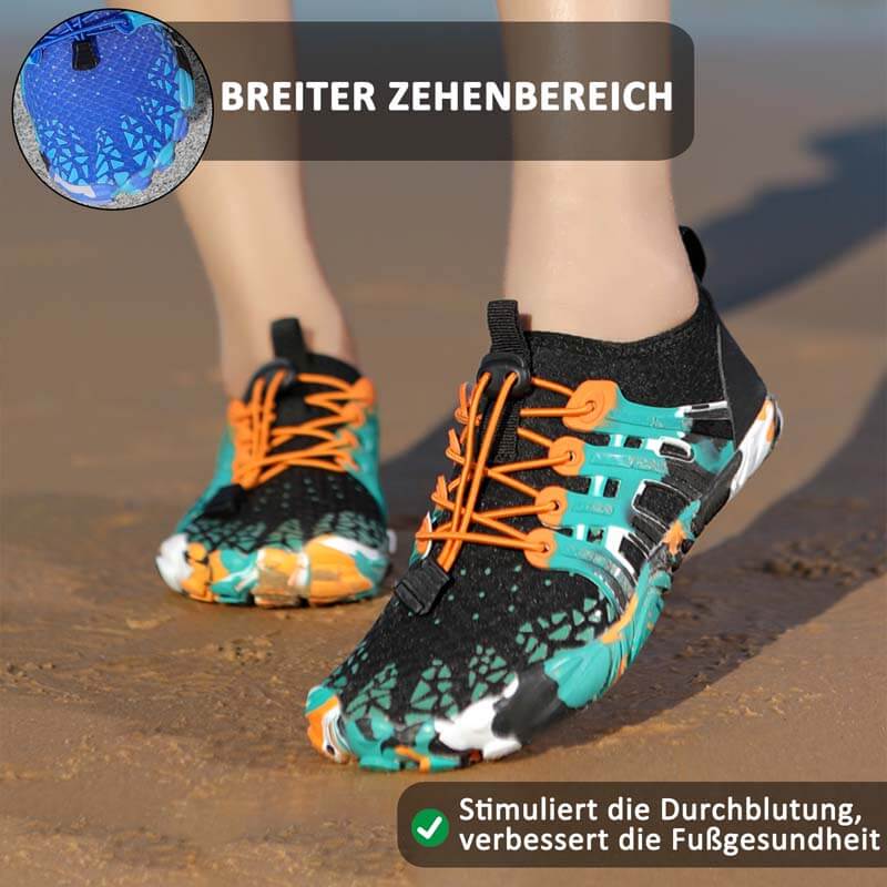 ✓ Breite Zehenbox – Eine großzügige Zehenbox und flexible Konstruktion ermöglichen Ihren Zehen natürliche Bewegungsfreiheit und Spreizung, was Kraft und Flexibilität im Fuß merklich steigert.