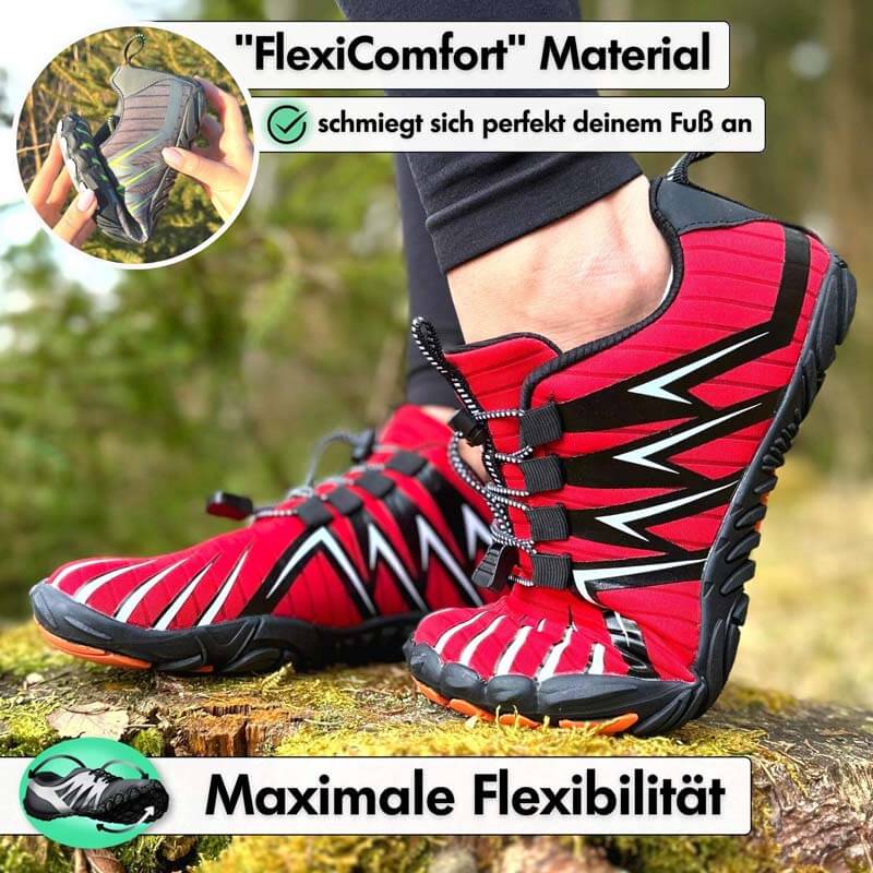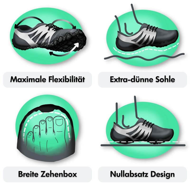 ✓ Breite Zehenbox – Eine großzügige Zehenbox und flexible Konstruktion ermöglichen Ihren Zehen natürliche Bewegungsfreiheit und Spreizung, was Kraft und Flexibilität im Fuß merklich steigert.